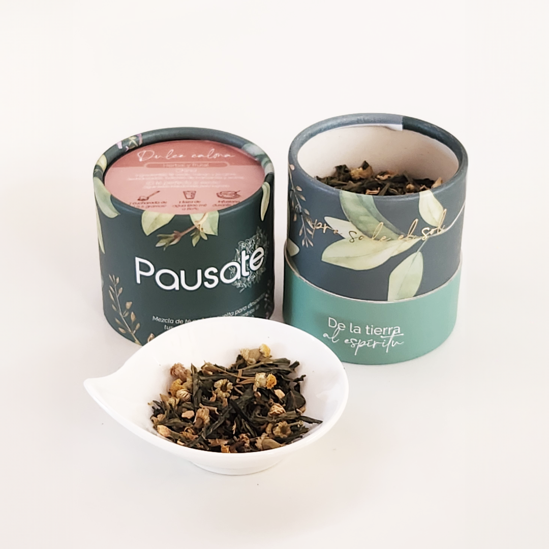 Té verde, mango y jengibre deshidratados, botones de manzanilla y aroma.
