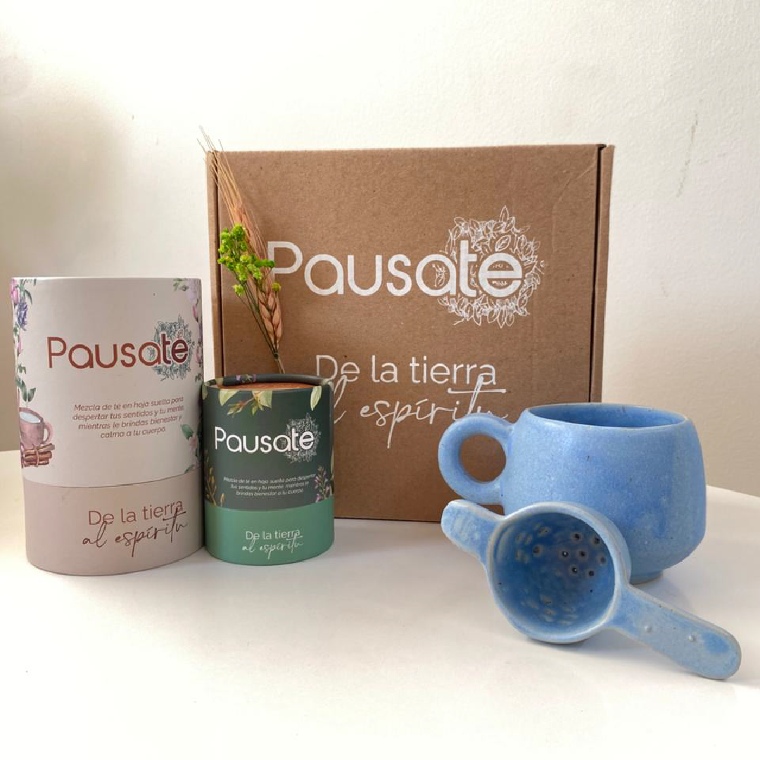 ¿Cuándo fue la última vez que te regalaste bienestar? Este kit es ideal para ti o para darle a alguien especial. Lo puedes personalizar eligiendo el té que quieras; además, contiene una taza de cerámica e infusor artesanal azul o color piedra Barichara.